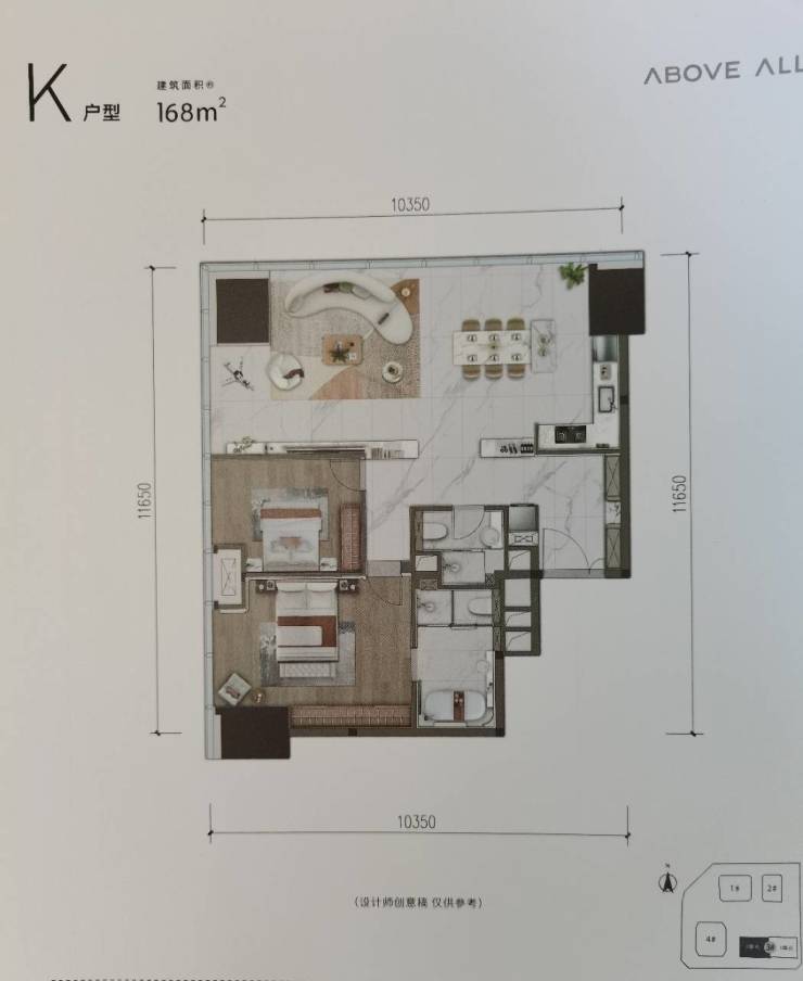 高区户型:90-168㎡(14-25层)