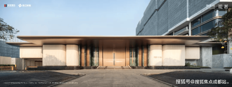 外立面延续锦宸院“金镶玉”经典血统,升级为“金玉珐琅”弧线美学,采用真正的“零漆面工艺”,“白玫瑰石材+铝板”奠定温润主基调,搭配香槟金铝板做线条勾勒与细节修饰。