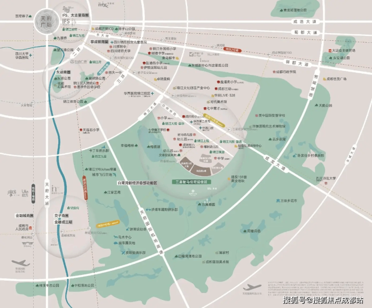项目的稀缺性,始于锦江区三圣乡/驸马板块核心占位——踞守板块头排岛居优越位置,隶属锦江2万亩生态绿肺核心,毗邻2.2km白鹭湾湿地,被68个公园环绕,负氧离子含量远超市区20倍,是主城难寻的公园岛居秘境。作为两大国企6次联袂、深耕驸马半岛打造的约500亩理想城邦续作,板块发展成熟、确定性拉满。