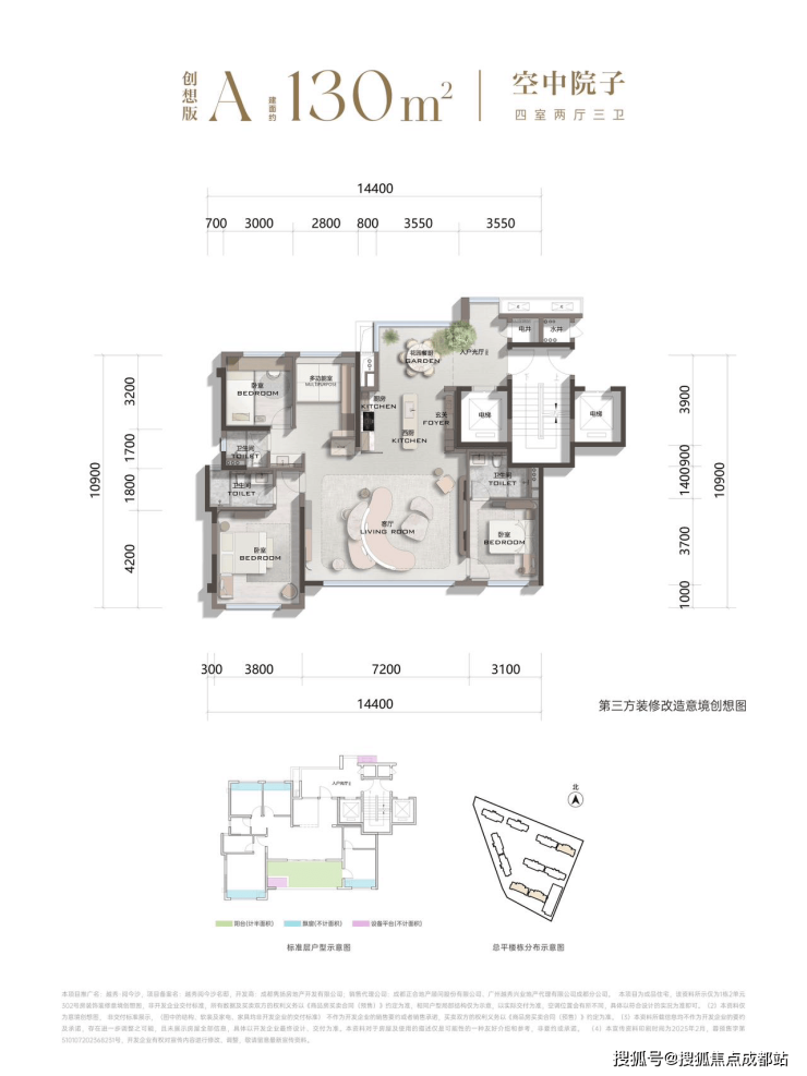 130㎡四房两厅三卫·空中庭院