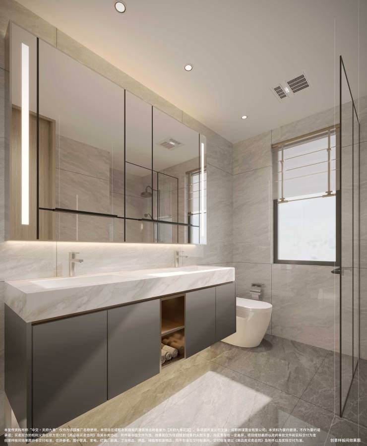 4:所有主卫,都带双台盆设计,把浪漫还给夫妻。早八同时洗漱不打挤,还能对镜互聊今天的造型穿搭。主卫双台盆设计,让即使是完全主打功能的卫浴空间,也能有温馨甜蜜的情感交流