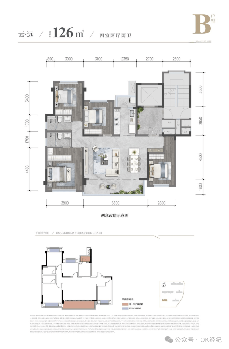 户型亮点:户型得房率约“97%”;“0过道”无任何浪费面积;前后独立“双阳台”设计;独立不计产权“入户花园”;南北通透,观景阳台可“正看龙泉山脉”