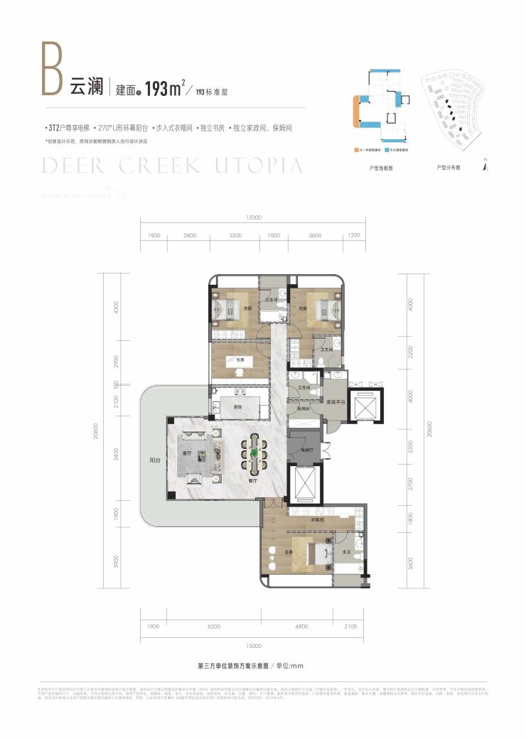 ②三梯两户顶儫配置:公梯与私梯分离,管家保姆专属电梯,独立入户动线。