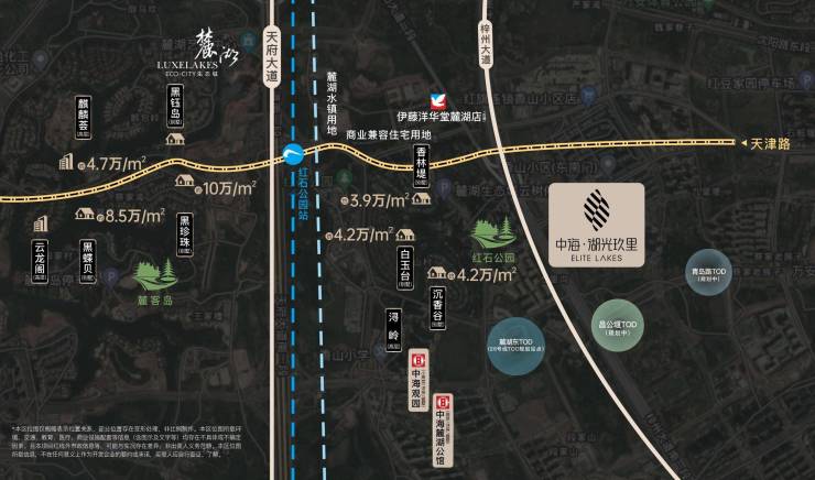 璀璨商业:麓湖水镇、伊藤天府旗舰店(在建中)、天府和悦广场、山姆会员店、麓山麓镇;