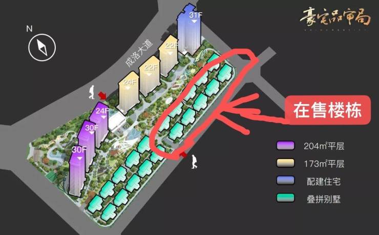 低密度,舒适楼间距,叠墅和高层楼间距最大约47米