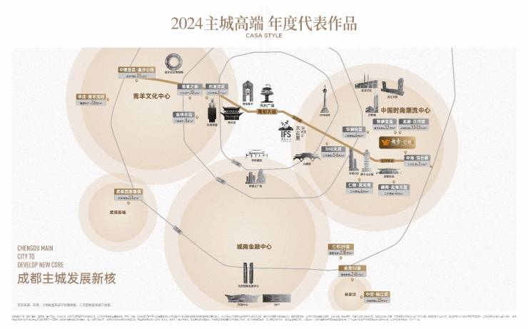 1、蜀都大道-城市壕宅走廊:以天府广场为中心点,向西串联着少城、浣花溪、金沙三大官邸壕宅的基因,每一座影响成都三千年的地标壕宅皆出自于此,向东一脉传承,串联现代成都壕宅城市地标-太古里/东大路的D10、仁恒滨河湾、迎晖天玺。