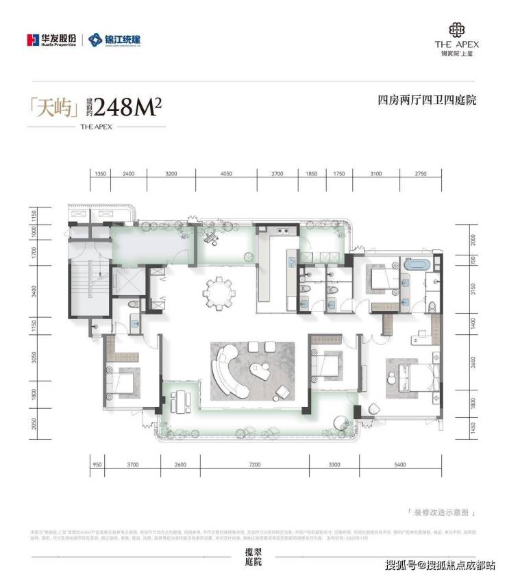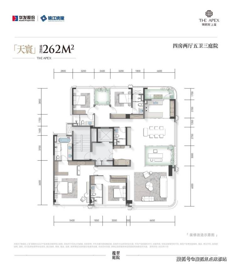 锦宸院·上玺主力户型为190-329㎡的进阶奢宅,实现一梯一户、独立入户光厅、户内多平院空间、多套房等配置。以建面约190㎡户型为例,该户型得房率显著提升,空中庭院从3个增加至5个。
