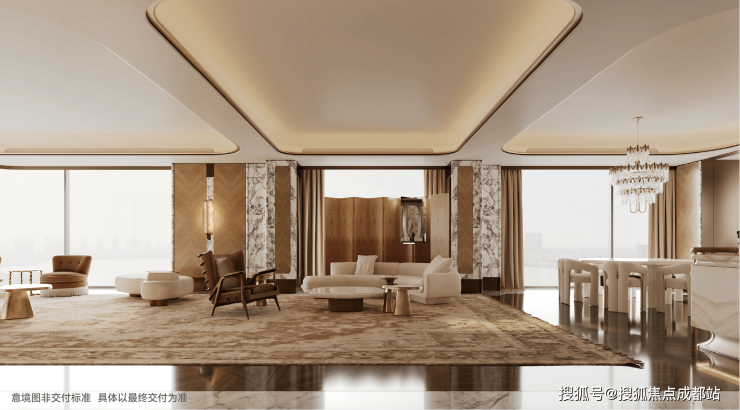 大门搭配的超尺度日照金山雕塑、与国家工艺美术大师亲研的和田碧玉门钹,更将尺度、文化与仪式的融合,与精神高度的锚定,使大门区域不再只是通往家的路径,更是金融城三期的精神堡垒、致敬成都文明的城市雕塑,让居住者每一次穿行,都感受到心理和视觉上的双重享受。