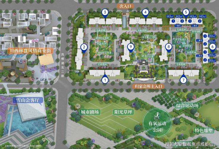 项目与两大城市公园仅一街之隔,200亩凤栖湖中央公园与120亩运动主题公园形成天然氧吧,为业主提供全天候的生态休闲空间。