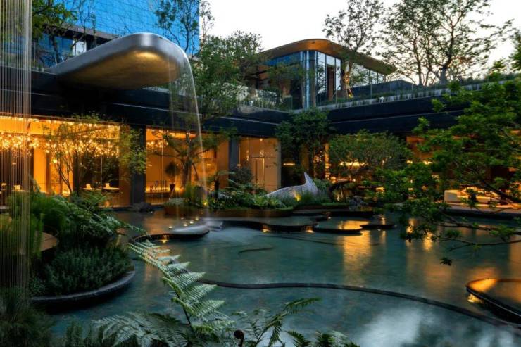 立体园林营造:以《山海经》为设计蓝本,巧妙利用12米地形高差打造近3万㎡沉浸式山水园林,营造步移景异的诗意栖居环境。