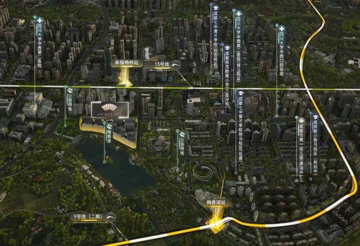 完善生活配套:三大华西医疗机构环伺,双地铁(9/13号线)立体交通网络,成师附小与七中育才构筑优质教育体系。