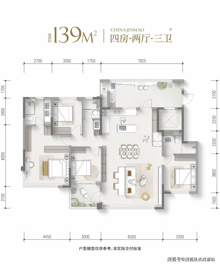 建筑面积约:110-119㎡全景超享T4 128-168㎡奢享大平层