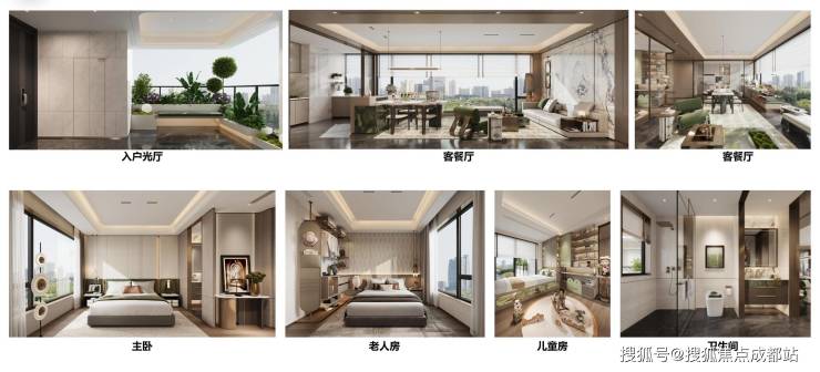 户户配置入户光厅;全系大横厅+大阳台设计;LDK一体化空间;主次卧奢适尺度保障;精研当代高端家庭生活场景所需,定制化打造人与自然强交互、人与人强交互的家庭社交型空间。