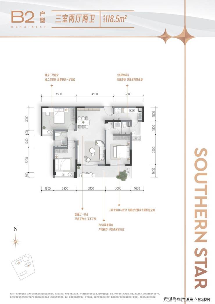 主力户型:118-126㎡三房两卫全能户型