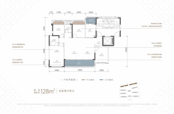 128功能套四:6.9米横厅,纯正真四房