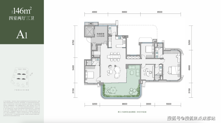 建面约 146㎡ 四房三卫(总价约 500 万起)