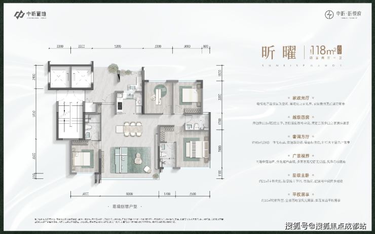 建面约140㎡四房三卫 超广角全景舱,对标千万级豪宅