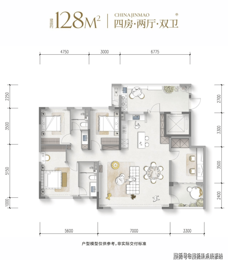 建面128㎡ 四房两厅双卫