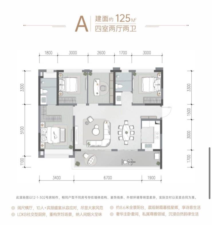 8.6米景观阳台丨主景观面布局丨明厨明卫丨独立通风系统