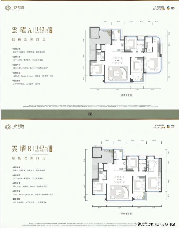 建面约 143㎡ 四房三卫(总价约 450 万起)