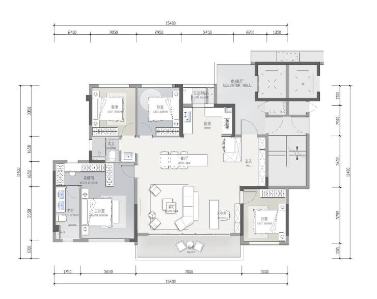 【酒店式套房】主卧套房奢配超大衣帽间、独立卫浴,从容静谧。