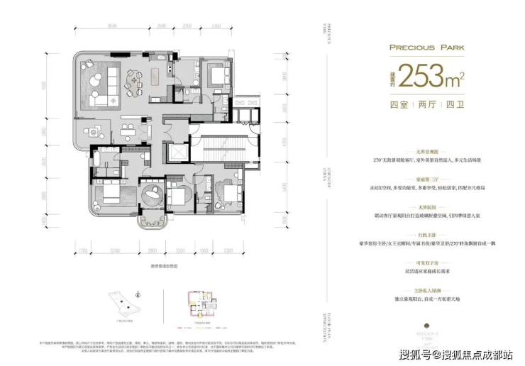 ✅ 建面253㎡四房四卫(顶豪顶配首选):楼王户型,总价1037万起,270°环幕视野,全景舱端厅设计,空间序列感拉满;主卧享7米双面采光,窗地比领先同级别产品,适配世家大族与高阶改善需求。