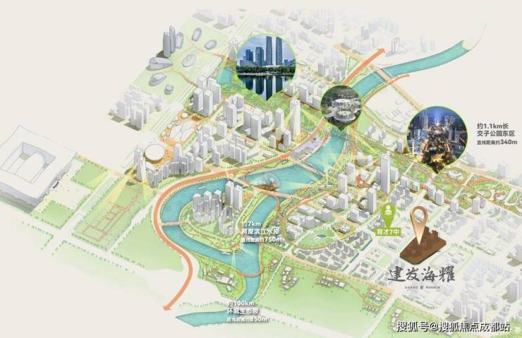 前方为成都七中育才学校,不仅带来人文氛围,更形成了开阔的景观退距。这意味着,多数户型同时拥有“对望地标”的参与感与“俯瞰城央”的掌控感。这一视野格局,在规划图纸落定时便已注定,是任何后期设计都无法弥补的、纯粹的土地禀赋。