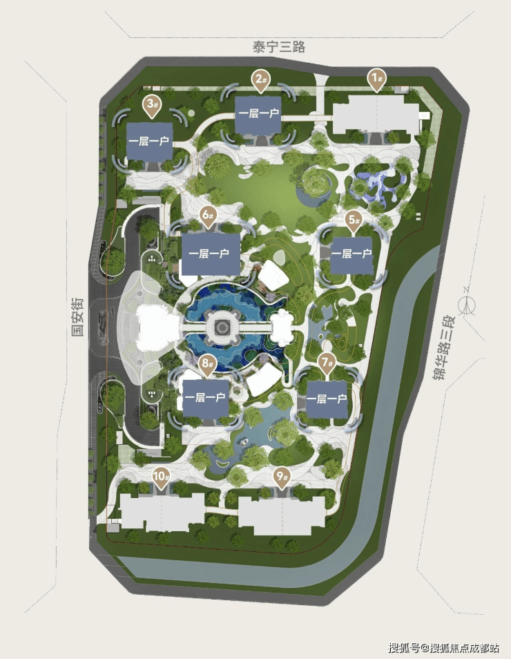 9栋建筑中,6栋实现单层独户,这不仅意味着别墅级的入户私密与尊崇,更从本质上重构了观景方式。全点式错落布局,让每一栋楼都成为“观景头排”,彻底告别对视与遮挡,正南北朝向,最大化接纳光线,让晨昏光影成为室内的天然装饰。