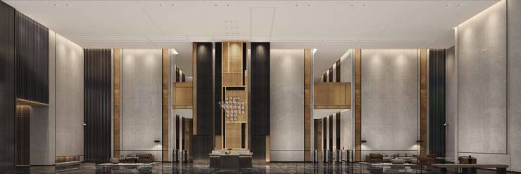 TCDL陈建中匠心设计11米挑空大堂,融合自然美学与现代工艺,配备高尔夫练习室、艺术展厅等高端配套