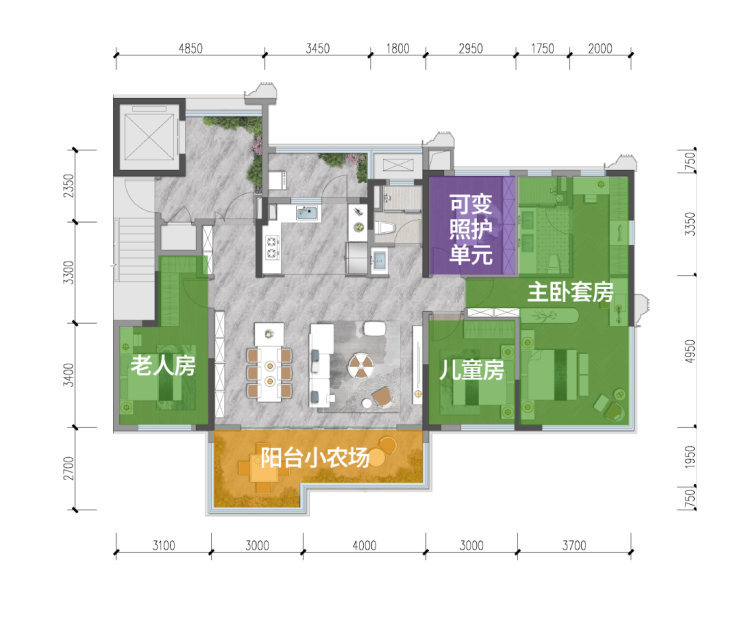紧凑面积实现五房功能的全生命周期适配