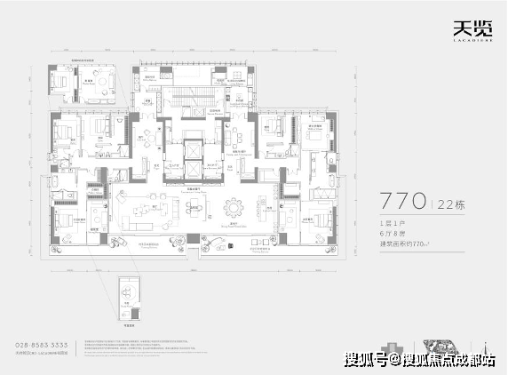 「LACADIERE 天览」二期,秉承“创造独一无二、可传世传承,真正意义的超级豪宅”之愿景。户户超大面积,以385㎡