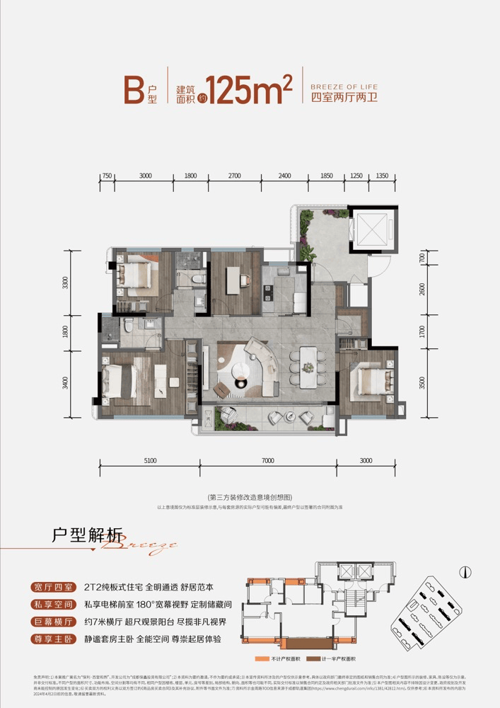 15.1米南向采光面,7米横厅设计,5.1米主卧开间,配合深度收纳系统,实现空间效能最大化。