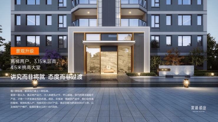 项目采用3.15米层高(部分楼栋)、4.5米挑空大堂等豪宅配置,创新打造270°全景入户厅,2T2专属电梯配置实现私密归家体验。