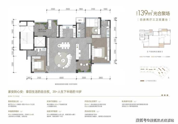 该项目由中国铁建、招商蛇口、华润置地三大品牌开发商联合打造,总占地面积约106亩,规划为容积率仅2.0的低密度纯小高层社区。目前在售的17层小高层产品,涵盖112-175㎡全系四房户型,采用两梯两户设计,精装交付,起步总价300万元。