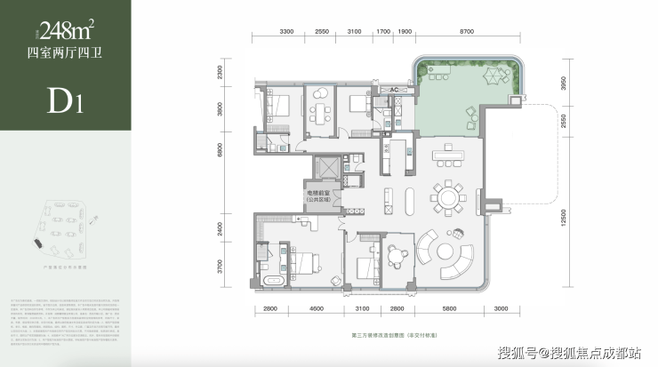 建面约 248㎡ 四房三卫(总价约 850 万起,楼王户型)