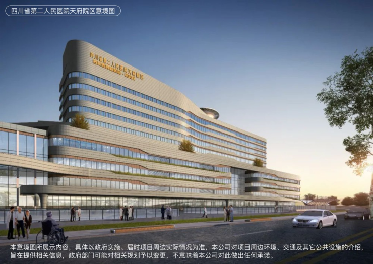项目近享四川省第二人民医院天府院区(建设中)、四川大学华西天府医院、玛利亚天府妇产儿童医院、安琪儿国际妇女儿童医院(建设中)、万达国际医院(建设中)等,全球前沿医学研发资源和人才队伍集聚,咫尺即享精细化、专业化的医护服务。