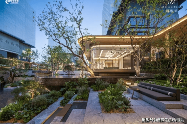 知海棠不仅在空间上实现园林→架空层→住宅的“三折叠”,还直接将“西湖十景”搬进园区。通过起伏和精心设计的步道系统,当你在社区步道上下漫步时,如同行走在自然的峡谷溪涧之中。当你在生活馆的书吧阅读时,外界的风光也映入眼帘,带来一种被山川溪谷包裹的自然疗愈感,整体美的体验非常连贯,一步一景。
