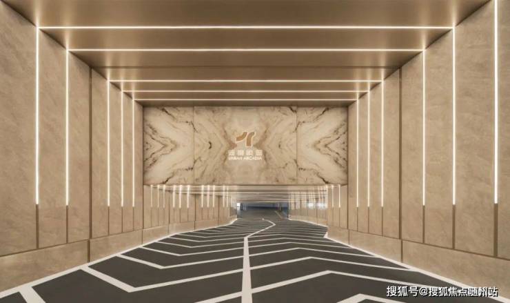 第一眼便是目前大宅新盘同款的奢阔大门,望宸映澜不仅尺度宽阔大气,伸出的酒店式迎宾门头深深向外挑出,其后环岛落客区中间一组雕塑叠水与背后的透光奢石景墙形成对照,像极了奢华的酒店落客大堂,将仪式感直接拉满。