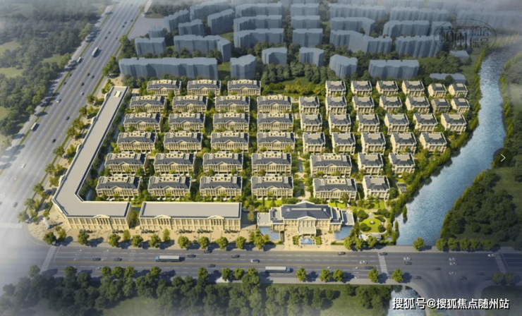 整个园区,以经典的绿城法式墅区景观大中轴贯穿,占地约1000多㎡,联排建筑的设计,融合了中国传统院落布局与法国枫丹白露宫的审美,外立面大面积采用全石材干挂,檐口等细节部位使用仿石。