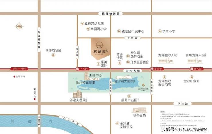 作为杭州东部最大的生态景观湖,金沙湖不仅拥有约1000亩的浩瀚湖景,更汇聚了龙湖天街、银泰城等繁华商业,以及地铁1号线的便捷交通。这里,是杭州东部发展的核心引擎,是未来城市繁华的聚集地。