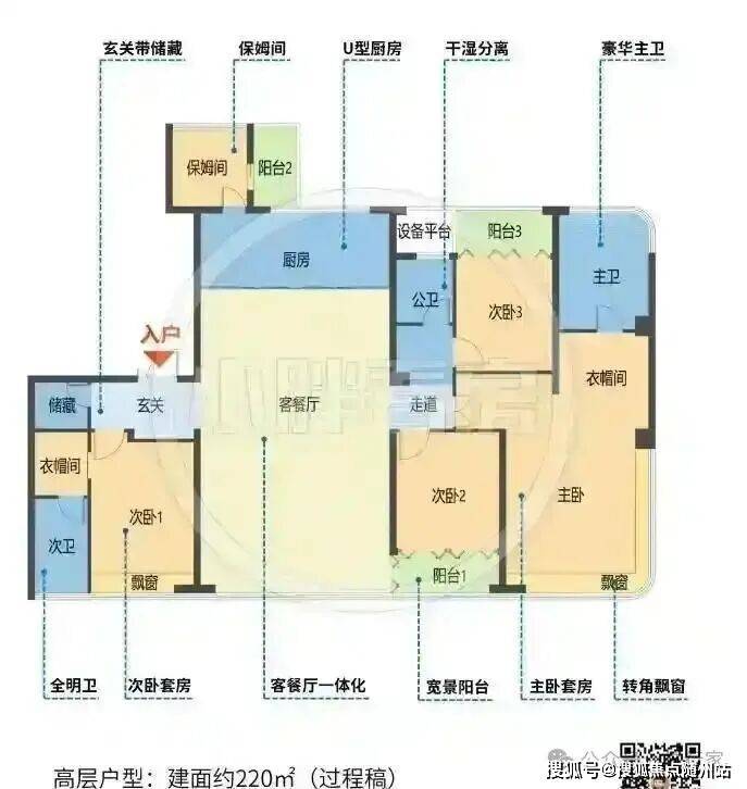 主力面积基本上都在200方以上,高层面积220㎡为主,有少量170㎡、200㎡,洋房面积240㎡,顶跃270㎡,是一个纯粹的高端改善项目。