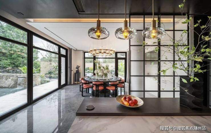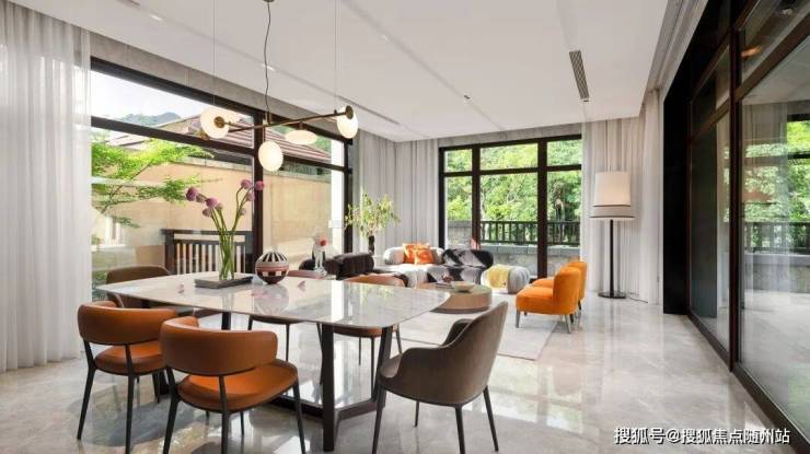 万科公望的精工迭代至4.0,耗费16年时间打造,是其他项目所望尘莫及的,也是杭州独一份。一层的平面是「曲尺型」的布局,客餐厅之间以游廊相连,客厅与餐厅以斜45°角的对望关系存在,中间以内庭水景相隔,巧妙地解决了室内与室外之间的渗透关系。这种设计,不仅让空间更加灵动,也让生活更加自在。