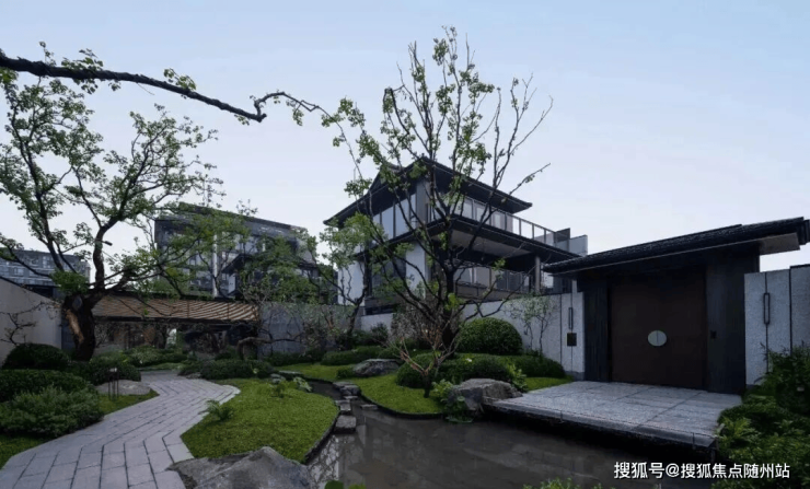 走过约40米和风游廊、黛色青瓦下,踏星而行,复现古时大宅堂前,实现四季有景、步移景异,在自然行径之中,构建「四水归堂」的风雅之景