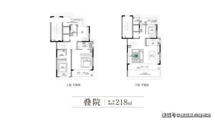 • 叠墅:建面约196-218㎡,私梯入户+6米挑空客厅+星空露台,得房率超90%;