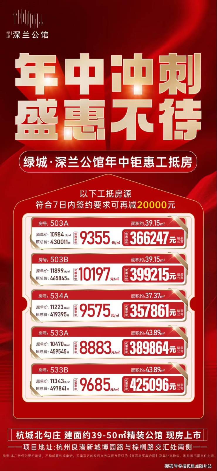 余杭深兰公馆以其得天独厚的区位优势、前瞻性的产品设计以及精工品质的准现房呈现,成为不可忽视的“城北芯地标”。主力户型33-50方的灵动空间,精装总价39万起的亲民门槛,加之宜居宜办的双重属性与地铁口的便捷出行,深兰公馆正重新定义城北精致生活的内涵,为都市奋斗者与慧眼投资者开启理想人居新篇章。