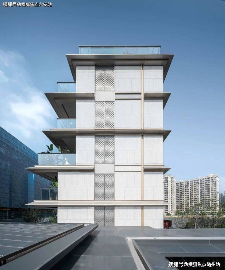 保亿·星润府的建筑设计融合了东方美学与国际元素,外立面应用三玻两腔玻璃幕墙结合高级铝板,呈现出现代简约又高级的视觉效果。设计团队从传统建筑中提取六重檐、华盖顶等东方审美元素,与现代奢材相结合,造就兼具国际感与温润感的建筑立面。