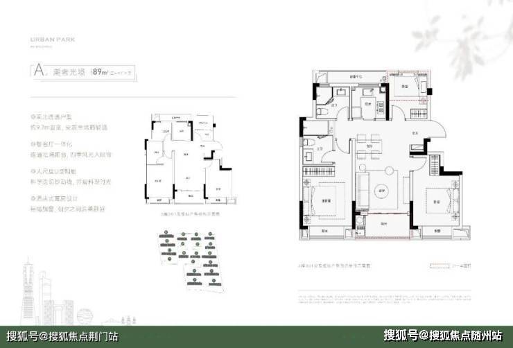 杭颂星澜府在户型的设计上更加游刃有余,主力的89方户型设计成了类四叶草的布局:动线合理、减少走廊的浪费、各卧室独立且私密。同时三开间朝南的设计,面宽达到了9.7米,主次卧均带有飘窗,采光充足,而且主卧为套房的布置,让生活更舒适。