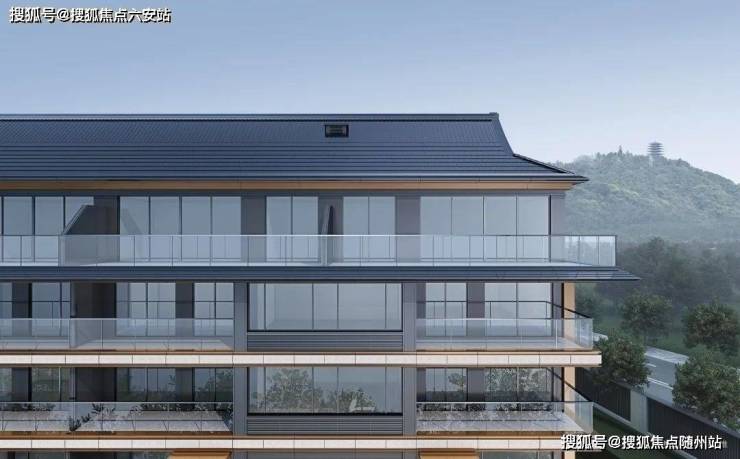 而建筑风格沿袭传统宋式美学,勾画出飞檐、歇山顶、窗棂等元素,立面以“四面铝板+三玻两腔玻璃”,搭配大面积蓝眼睛石材,古典而不失现代感,充满着高颜值的辨识度,让人一眼就怦然心动。