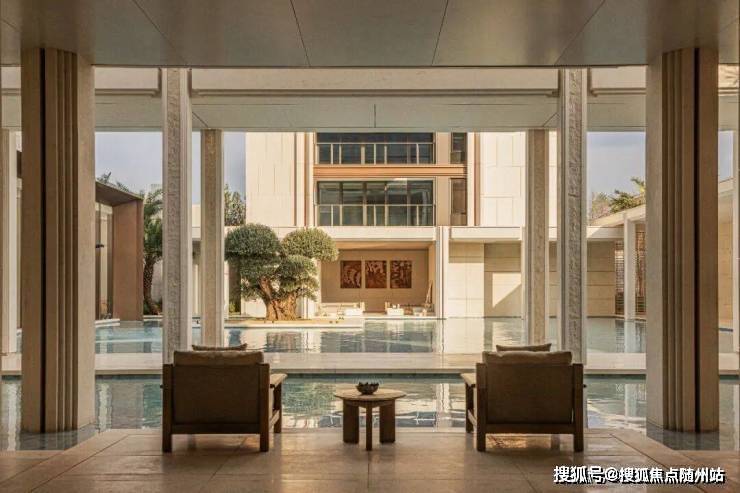 步入二进橄影廊庭,光影在回廊与水面间流转,构成静谧而富有呼吸感的水庭。天光倾泻,水色生辉,如同希腊安缦花园般悠然浪漫,演绎栖居的诗意序章。