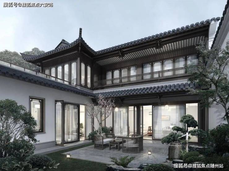 设计承袭传统中式院落精髓“围合院落,四水归堂”,创新演绎: